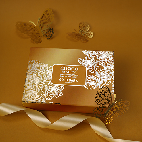 Born from the hands of the chocolatier, these golden shells are crafted with love from Belgian Gold chocolate coverture. This golden glow chocolate is made from a blend of Ghana, Ivory Coast and Ecuador cocoa beans giving your sweet tooth the right punch of fruity brightness and gentle bitterness. After these shimmering shells take form they are packed lip-smacking fruit gel, kissed with tropical tang. Below all these stuff lays a layer of crisp caracrakine, to give you the most awaited crunchiness. Feel the texture and flavor in each bite- where gold blends with fruit and chocolate sets an excellent example of craftsmanship and indulgence.